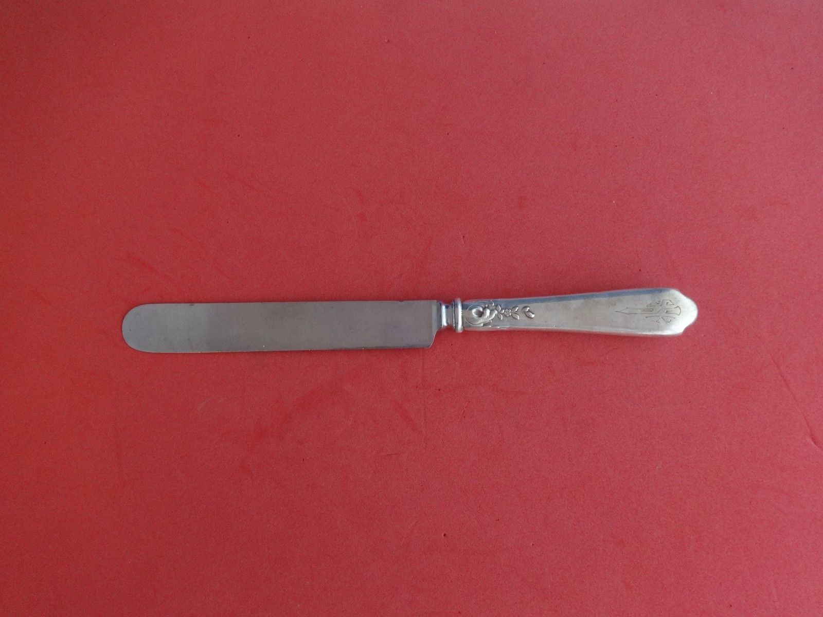 Sterling silver hollow handle with blunt blade DINNER KNIFE 9 1/2" in the pattern NELLIE CUSTIS BY LUNT. It is monogrammed (monos vary) and is in excellent condition.