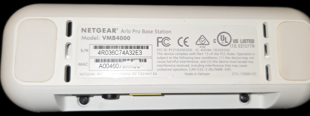 - Netgear Arlo Pro VMB4000 Security Base Station W/ Power Cord