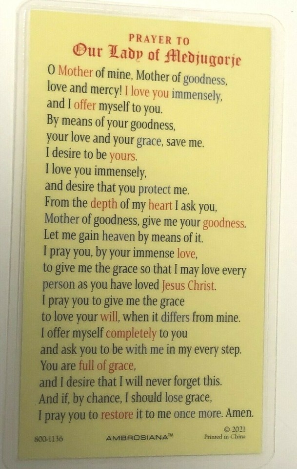 - Our Lady of Medjugorje Laminated Prayer Card, New #PCL-40