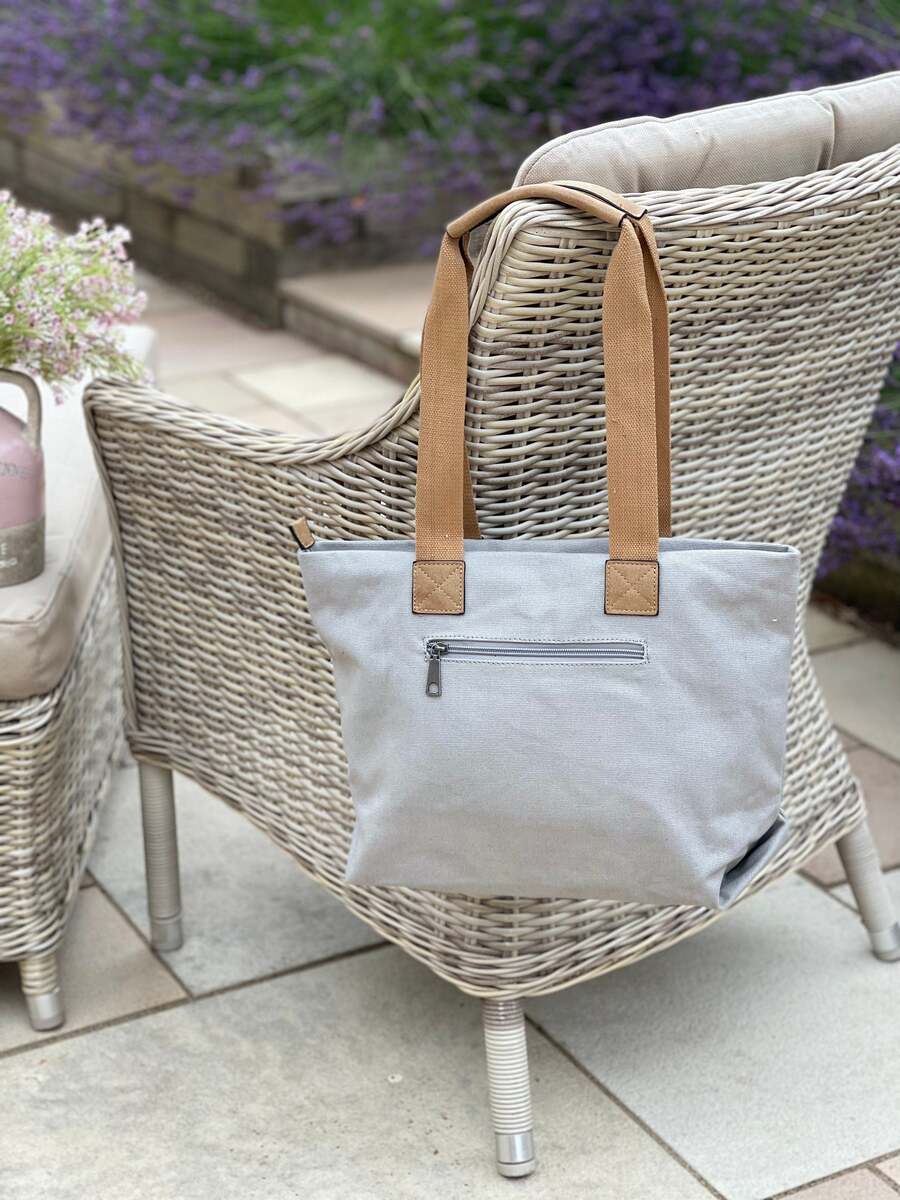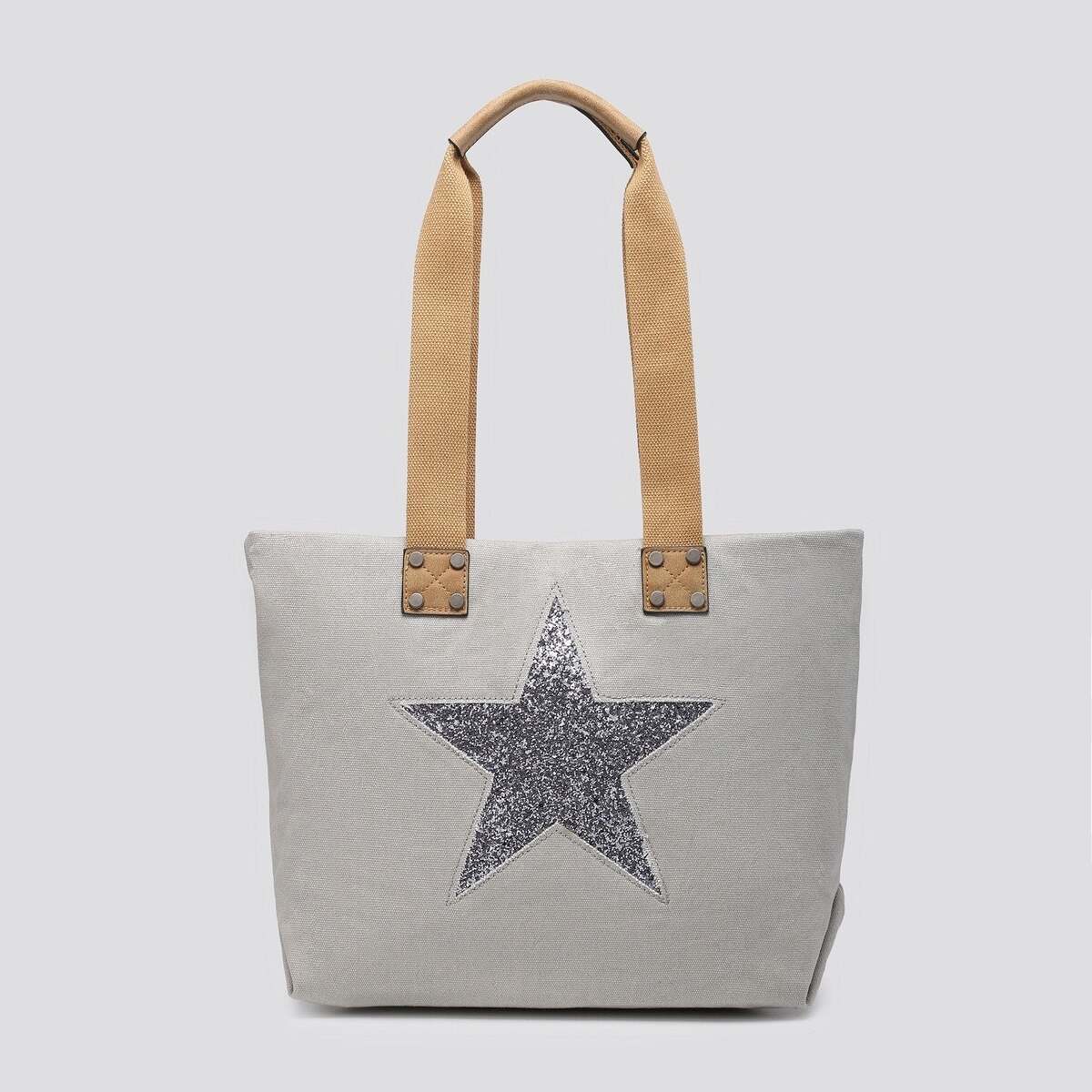 Pale Grey Encrusted Star Canvas Shoulder Bag