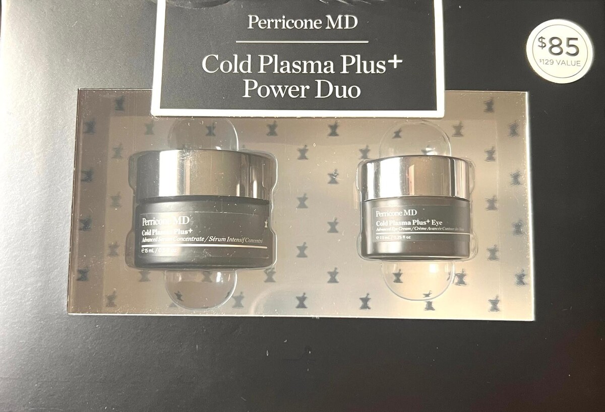 The Perricone MD Cold Plasma Plus+ Power Duo is a luxury anti-aging skincare set designed to deliver targeted results for both the face and eyes. This duo combines the Advanced Serum Concentrate (15ml) with the Advanced Eye Cream (7.5ml), offering a complete regimen to address multiple visible signs of aging.
