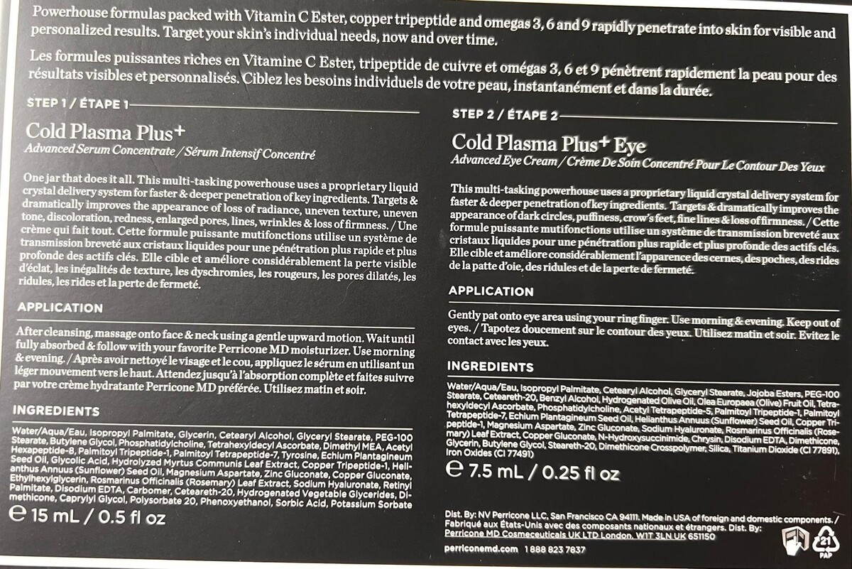 Perricone MD Cold Plasma Plus+ Power Duo Advanced Eye Cream Value $129