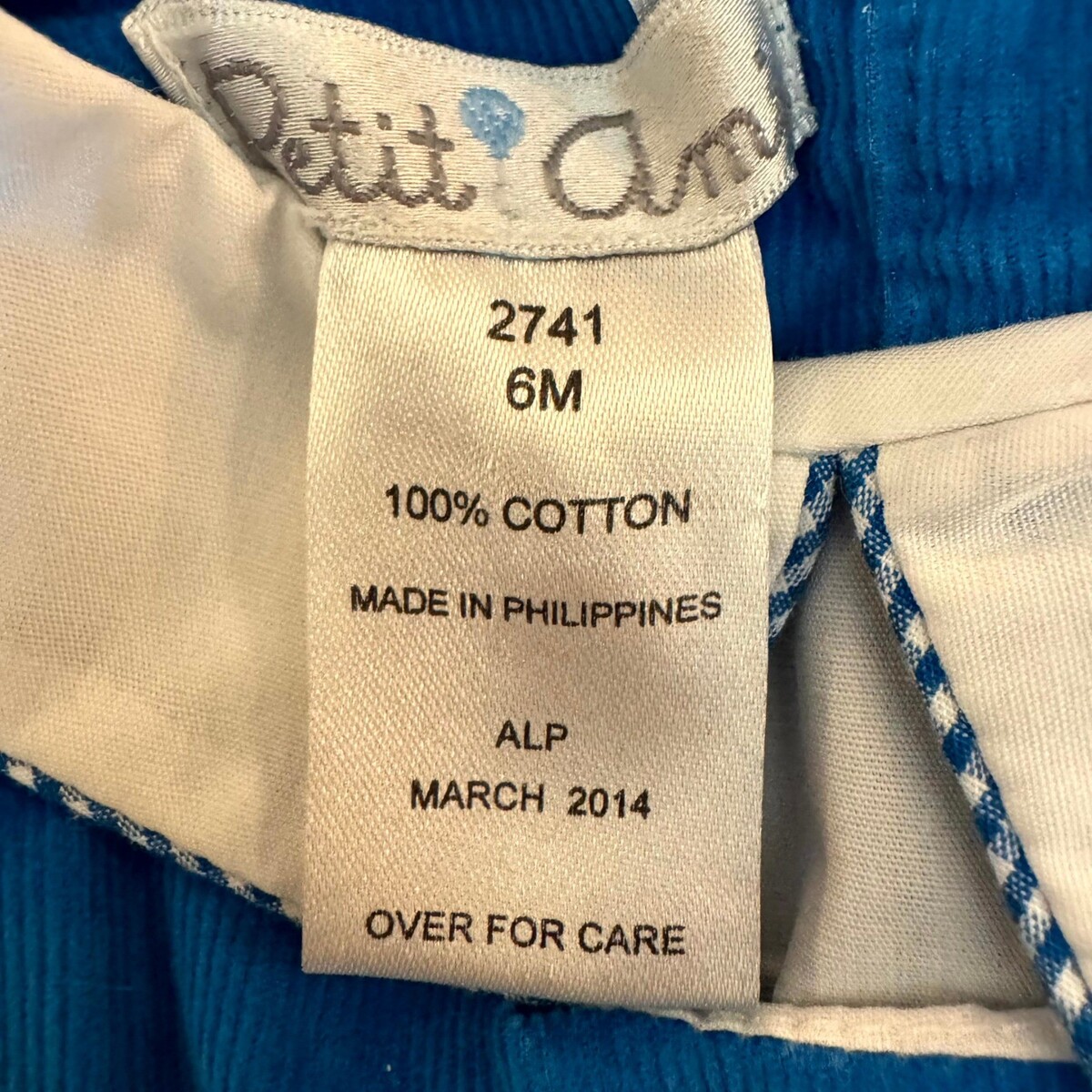 - Petit Ami Corduroy Bubble Romper 6M Embroidered Slipper Patches Peter Pan Collar