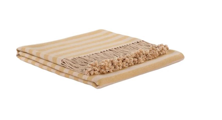 - Pure Fiber Throw Blanket Gold Multicolor Striped Blissful Breathable Soft