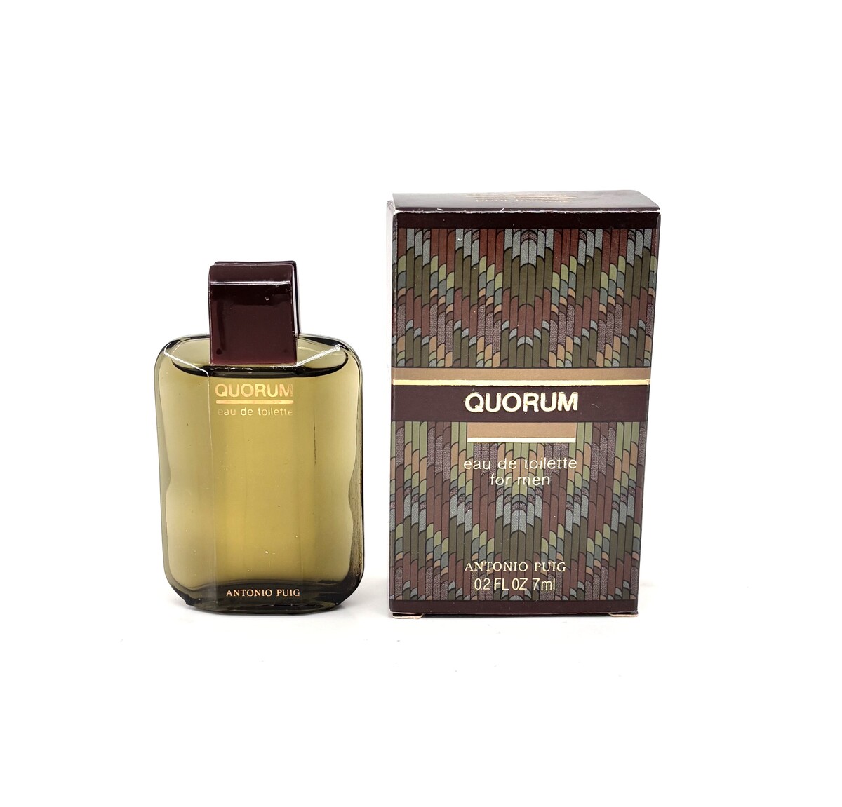 QUORUM by Antonio Puig POUR HOMME MEN'S EAU DE TOILETTE 7 ml 0.20 floz. MINIPERFUME VINTAGE REAL PICTURE PLEASE NOTE THAT DUTY FEES ARE INCLUDED IN THE SHIPPING PRICE FOR US BUYERS, DDP FOR UNITED STATES.