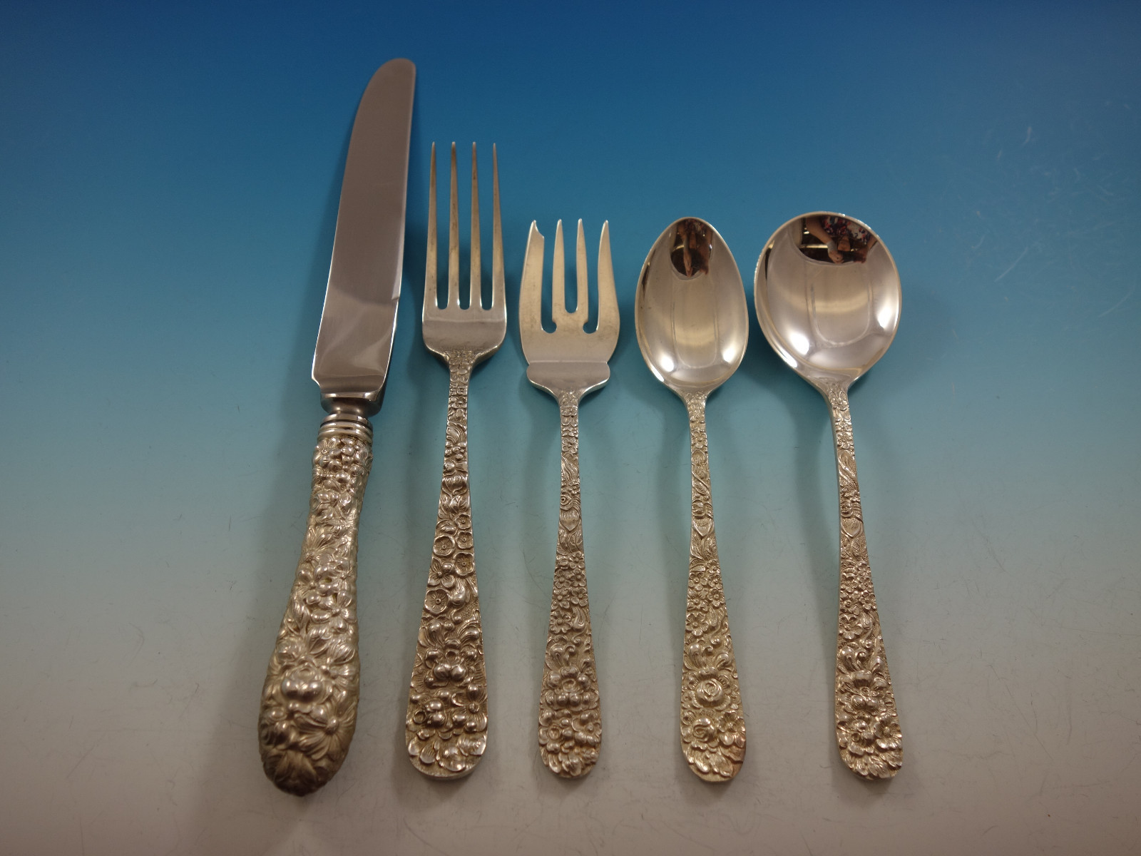 Rose by Stieff Sterling Silver Flatware Set Service 33 Pieces Repousse