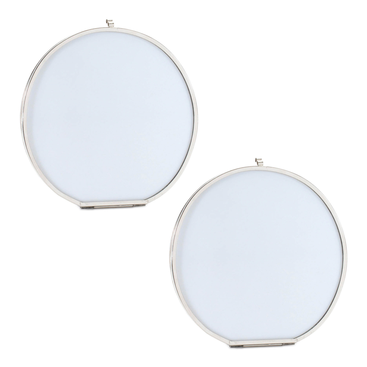 Showcase your cherished memories in style with this Round Iron Picture Frame. Featuring a chic gold finish and delicate clear glass cover, this modern round frame adds a touch of elegance to any tabletop. The sturdy metal base ensures a stable display, making it a perfect addition to your home or office decor. Sold in a set of two, these frames are ideal for adding a sophisticated, personal touch to any space.