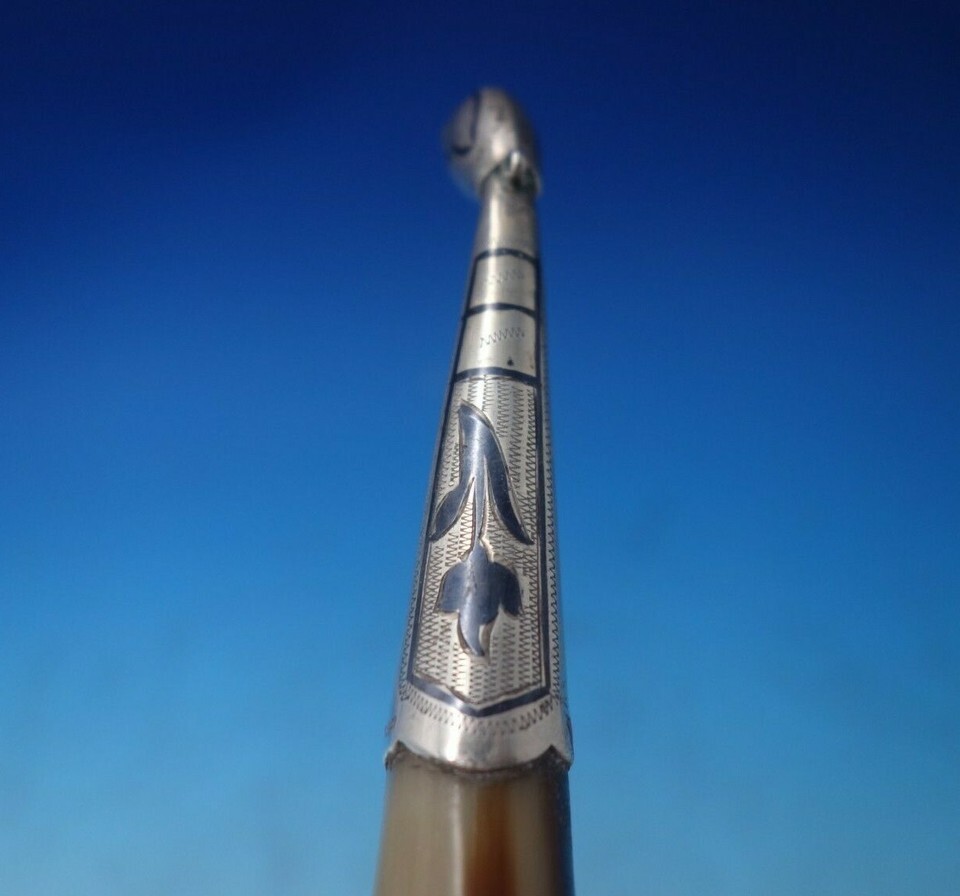 - Russian .875 Silver and Niello Drinking Cup Horn with Duck Head Mouth (#5578)
