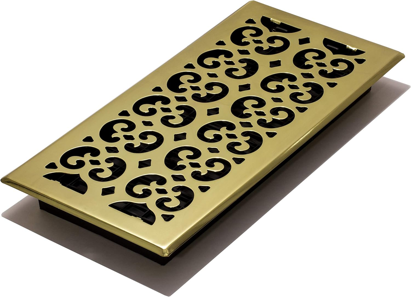 - SPH614 Scroll Design Floor Register, 6X14 Inches, Bright Brass Finish