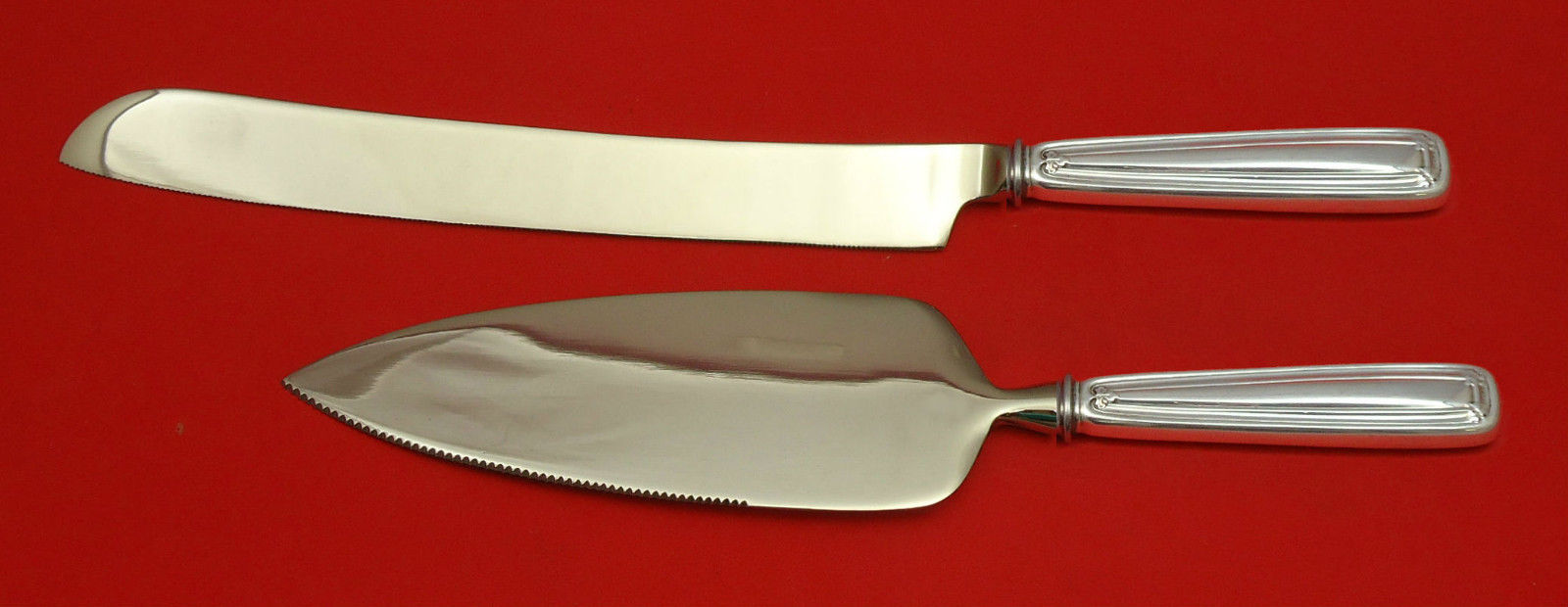 Sterling Silver CUSTOM MADE HOLLOW HANDLE WITH STAINLESS TWO PIECE WEDDING CAKE SET WHICH INCLUDES:
