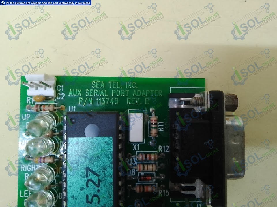 Sea Tel 113746 Rev B AUX Serial Port Adapter is a proprietary electronic circuit board or module used in Sea Tel (Cobham Satcom) maritime satellite TVRO/VSAT antenna systems. It facilitates an auxiliary (AUX) RS-232 serial port connection for the Antenna Control Unit (ACU), enabling essential system configuration, diagnostics, and the input/output of NMEA data for precise satellite tracking.