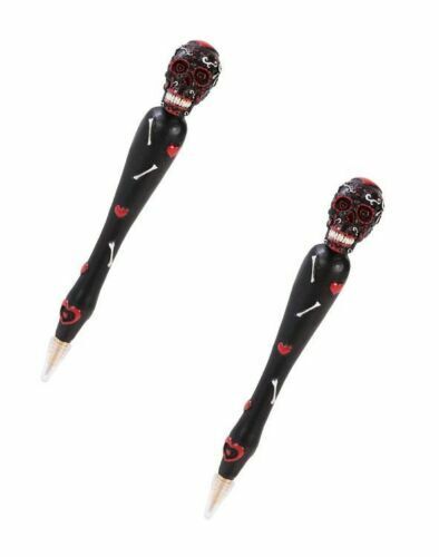 - Set Of Two Black Dias De Los Muertos Day Of The Dead Sugar Skull Stationery Pen