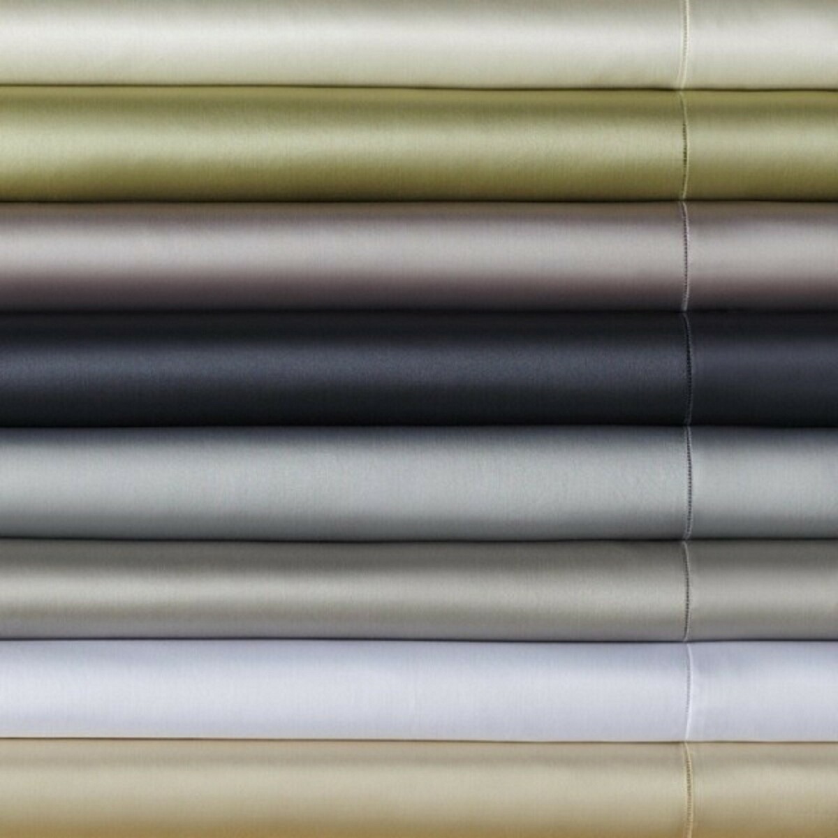 Slip in to luxury with Sferra's Giotto Collection. This classic, refined sateen bedding has a luminous sheen, rich drape and silken hand, finished with a crisp, classic hemstitched border. This sheeting is of the finest quality crafted in Italy. The duvet cover is flanged with hemstitch on three sides with a button closure while the bed skirt is gathered with a plain hem.