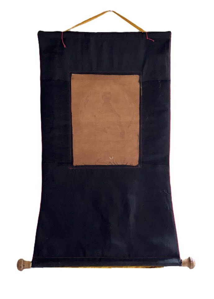 This original hand-painted Tibetan Thangka showcases SHAKYAMUNI BUDDHA/ Siddhartha Gautama a masterpiece of Buddhist art. Crafted using the oil varnish technique, a thin layer of oil is delicately applied to protect the Thangka from damage. Shakyamuni Buddha, born in Lumbini, Nepal, in the 6th century B.C.E., is the revered founder of Buddhism. This art piece captures the essence of his profound teachings and spiritual journey.