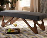 Soleil Dark Gray Fabric Upholstered Walnut Brown Finished Boomerang Bench