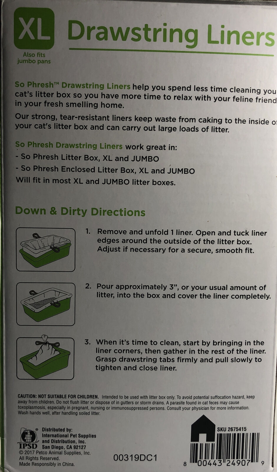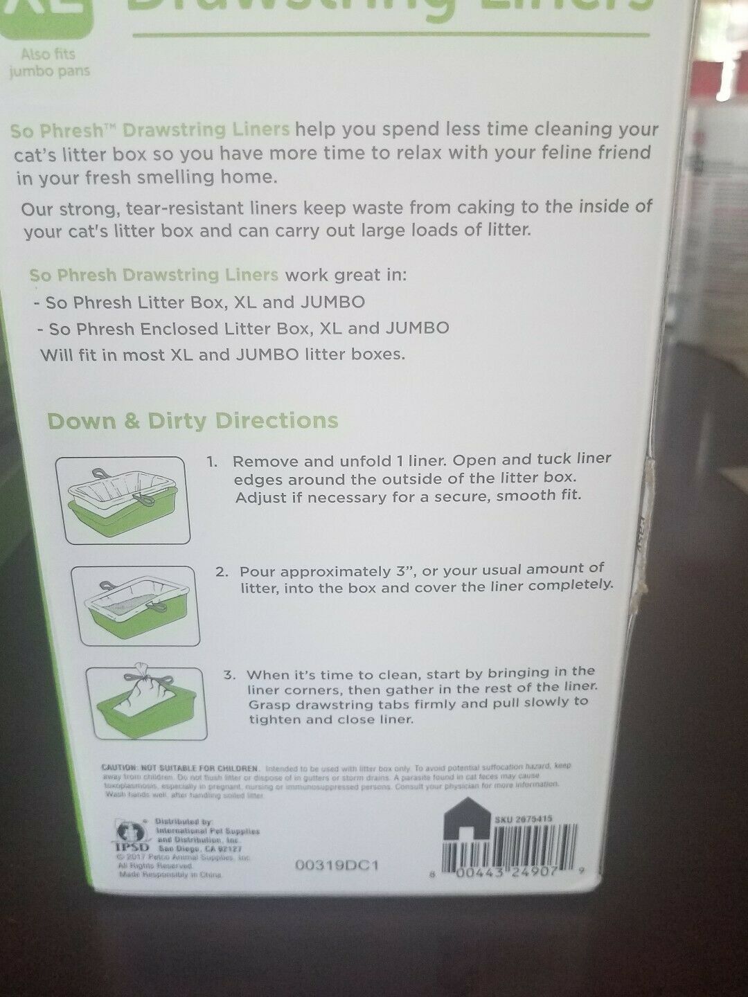 You Will Receive 1 ea Model: 2675415 Sophresh Drawstring Liners keeps litter contained for easy clean-up 1 ea 30 Ct. Package