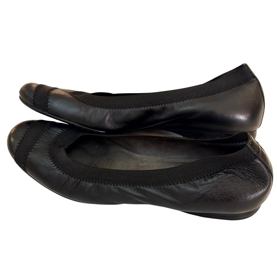 - Stuart Weitzman A408874 Black Leather Elastic Ballet Flats Made in Spain Sz 8 M