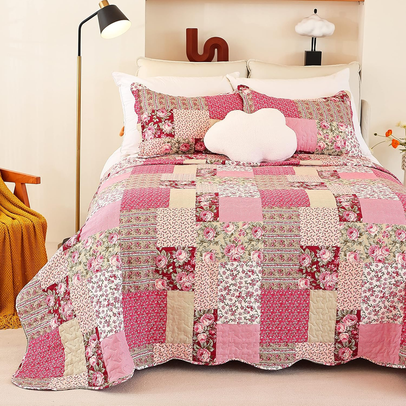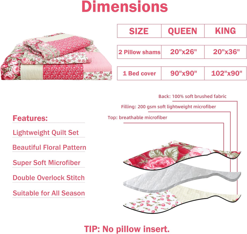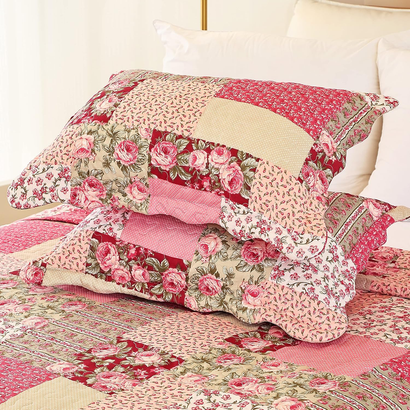 ??Unique Design?: The reversible quilt set features a unique classic patchwork made up with floral and striped patterns, easy to match your room decor, adding a flower garden style or bringing romance to your room. Soft shades of rose and patchwork add to the beauty of this floral quilt set.
