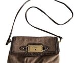 VTG Chaps Brown Tweed Herringbone Crossbody Bag with Faux Leather Trim and Brass