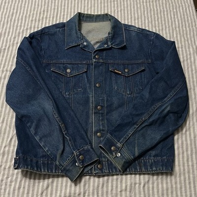 VTG Saddle King Men's Denim Jacket 48 Chest Blue Key Industries USA Western