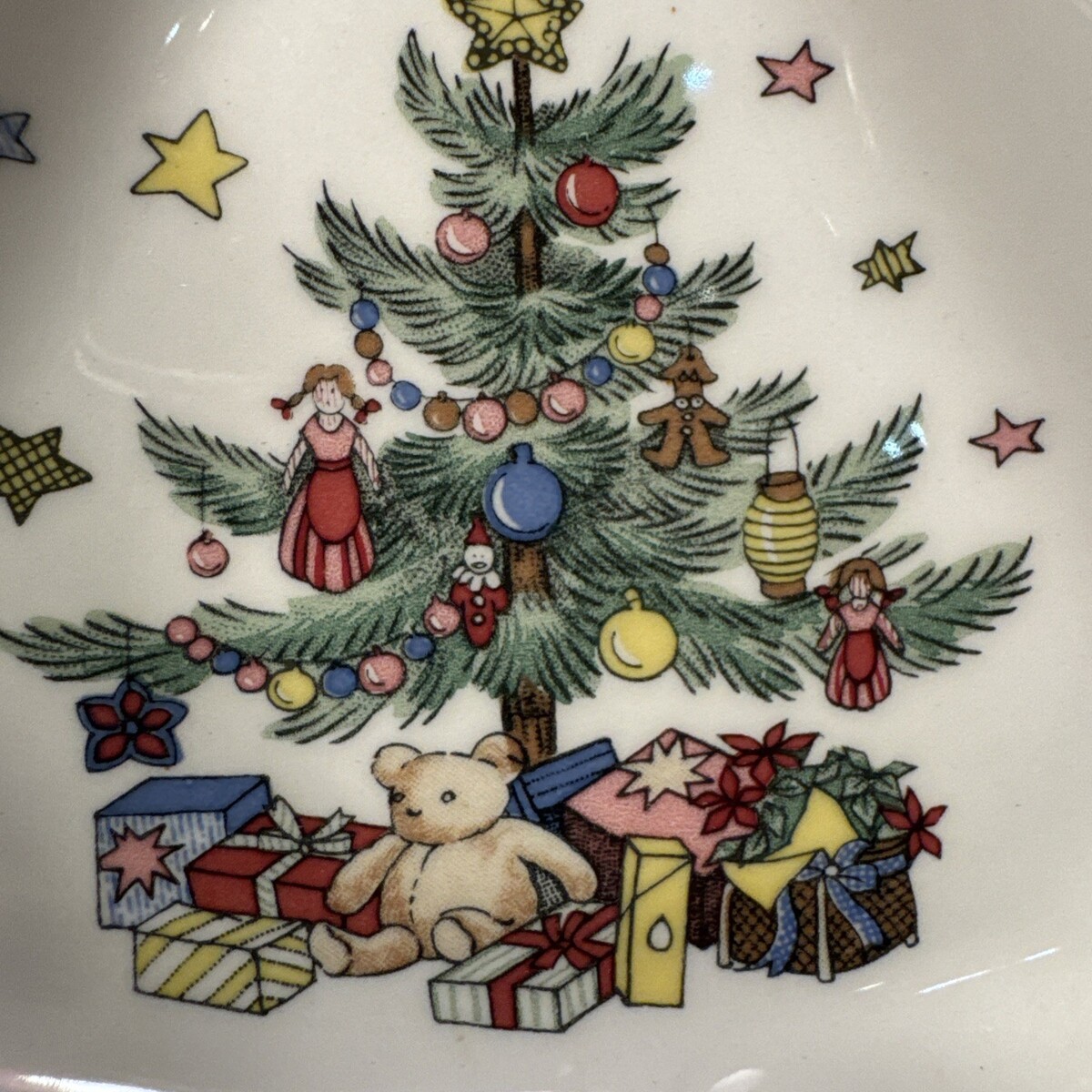 This VTG set of 4 Nikko Happy Holidays Candy Dishes features a festive Christmas Tree design, perfect for adding a touch of holiday cheer to any room. Made of ceramic with a glossy finish, these 6" candy dishes come in a multicolor design and are sure to brighten up your Christmas celebration. Imported from Japan, these traditional style dishes are ideal for displaying candies or treats during the holiday season.