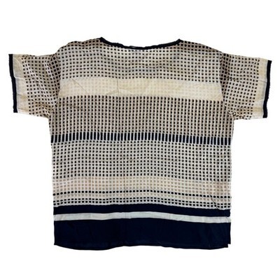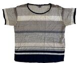 - Vince 100% Silk Grid Print Short Sleeve Blouse Top XS Cream Navy Tan