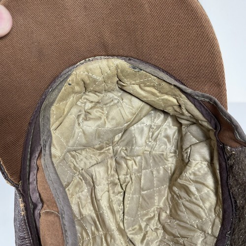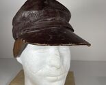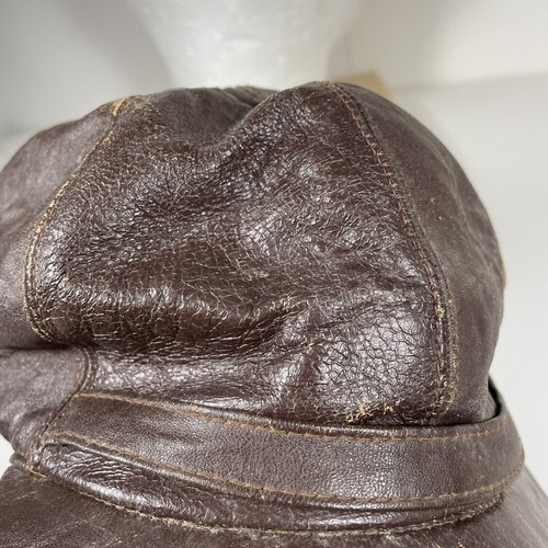 - Vintage Leather Hat 1940s Cap with Flaps WWII Maybe Small 6 5/8