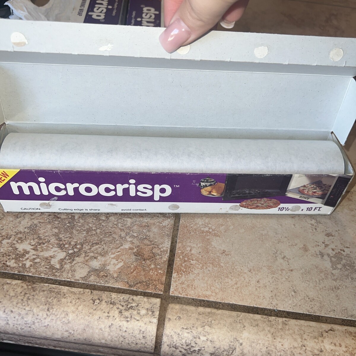 Vintage Microcrisp Microwave Crisping/Browning Wrap, 10oe inches x 10 feet per roll, ?As Seen on TV.? Lot of three open boxes of this discontinued late-1980s to early-1990s microwave product designed to bake, brown, and crisp foods like meat, poultry, and pastries. Two boxes appear nearly full but cannot be guaranteed; the third has about one-quarter remaining. Sold as-is for collectors or nostalgic kitchen use. Packaging shows age and wear consistent with long-term storage. A fun throwback to classic As Seen on TV microwave innovations.