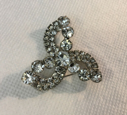Vtg Swirl Rhinestone Pin. Looks like an infinity symbol but with three loops. 2 inches. Preowned in very good condition. No markings. Feel free to email with questions. I do combine shipping on multiple purchases. Have a great day!