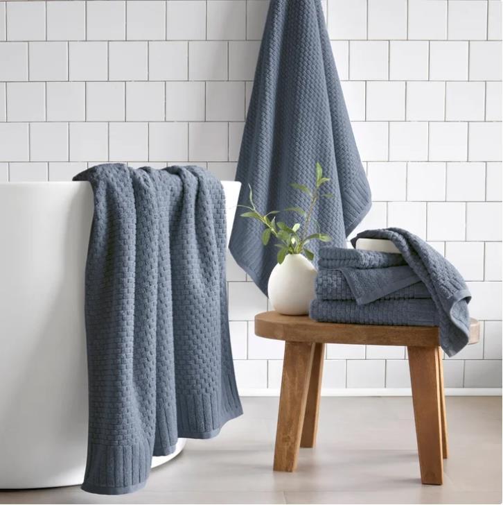 Elevate your bath routine with the WelHome Textured Towel Set. Crafted from 100% Cotton with a zero-twist yarn construction, these towels offer a lightweight, cloud-soft feel that?s gentle on the skin. They are OEKO - TEX Made in Green Certified, meaning they were tested for harmful substances during manufacturing.