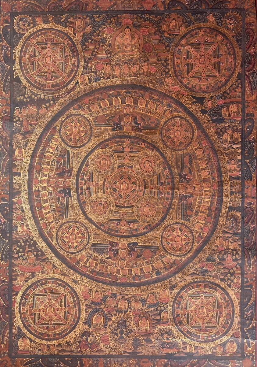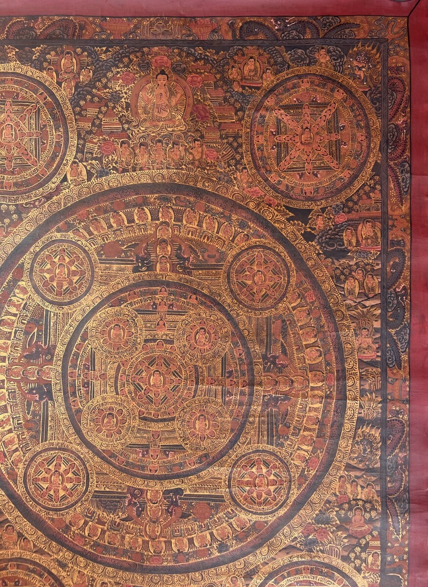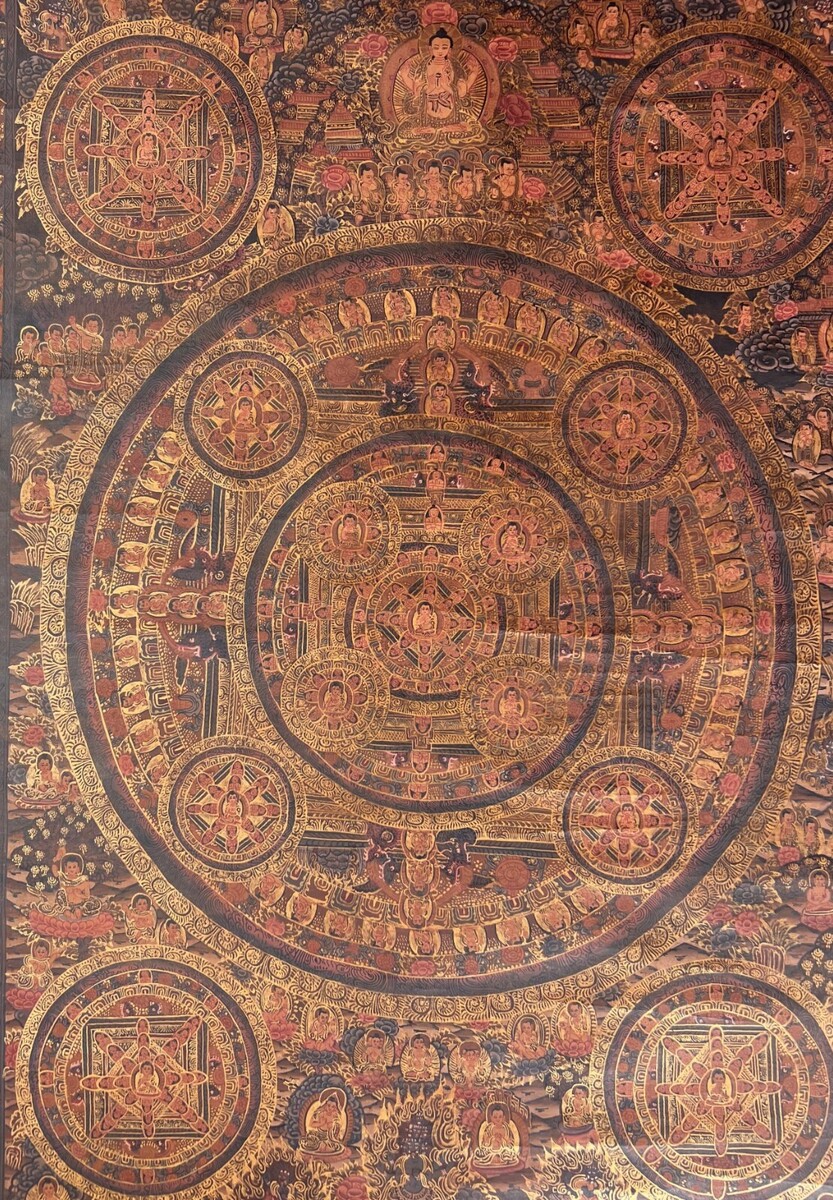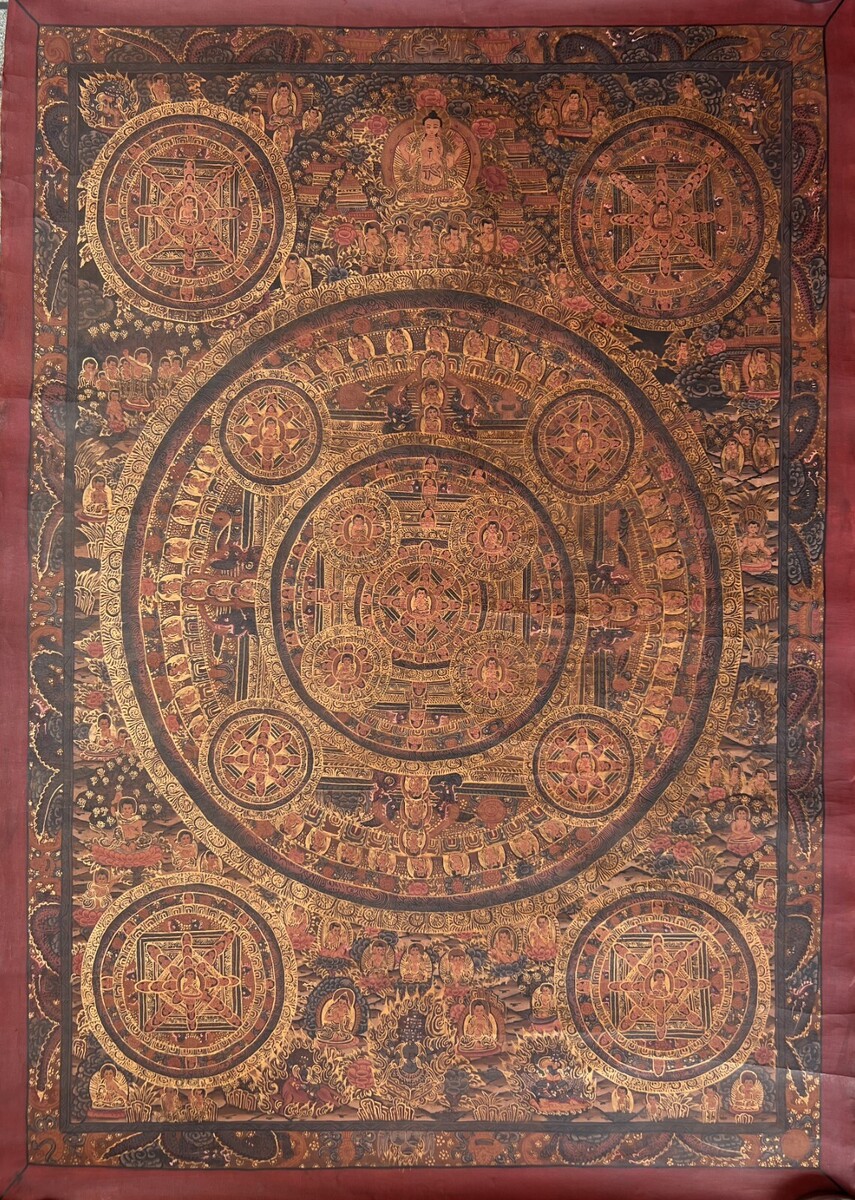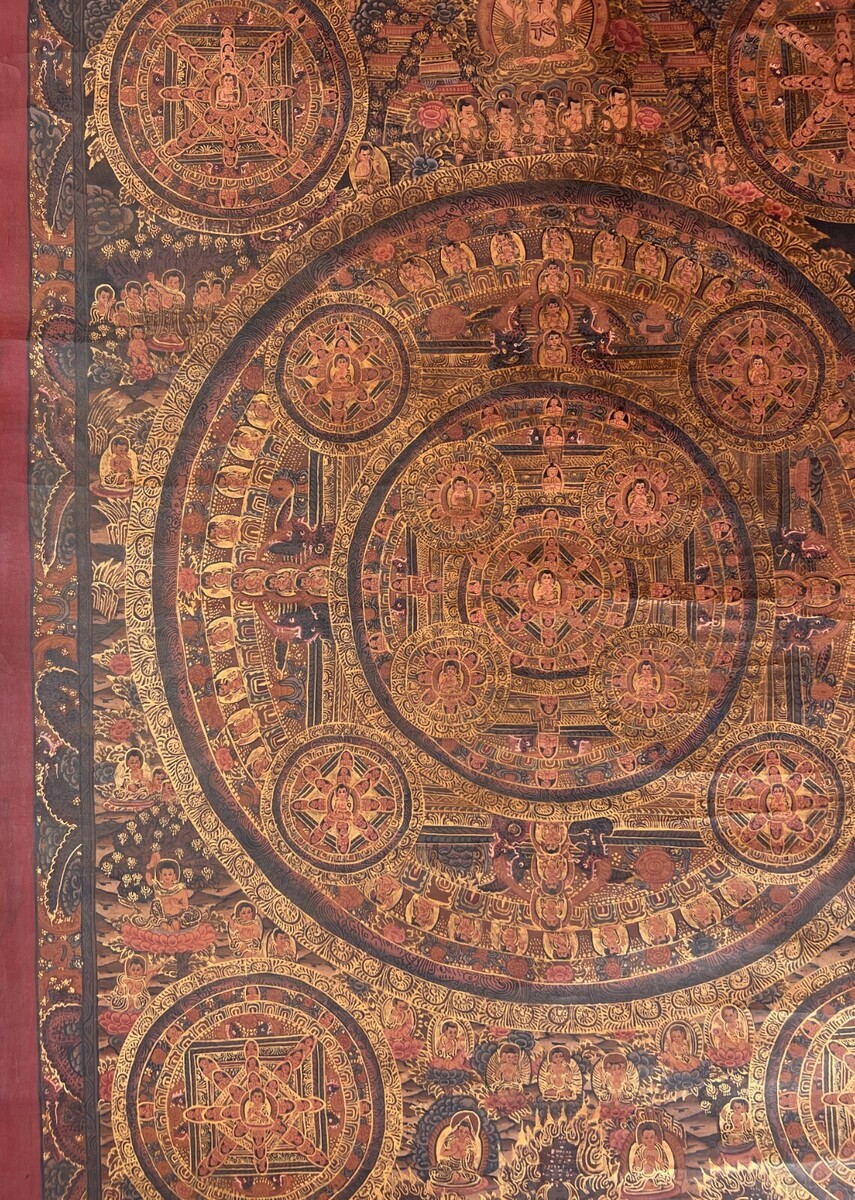 - WHEEL OF LIFE BUDDHA MANDALA OLD OIL VARNISHED ORIGINAL TIBETAN THANGKA PAINTING