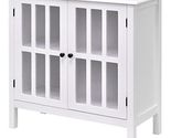 White Wood Bathroom Storage Floor Cabinet with Glass Doors