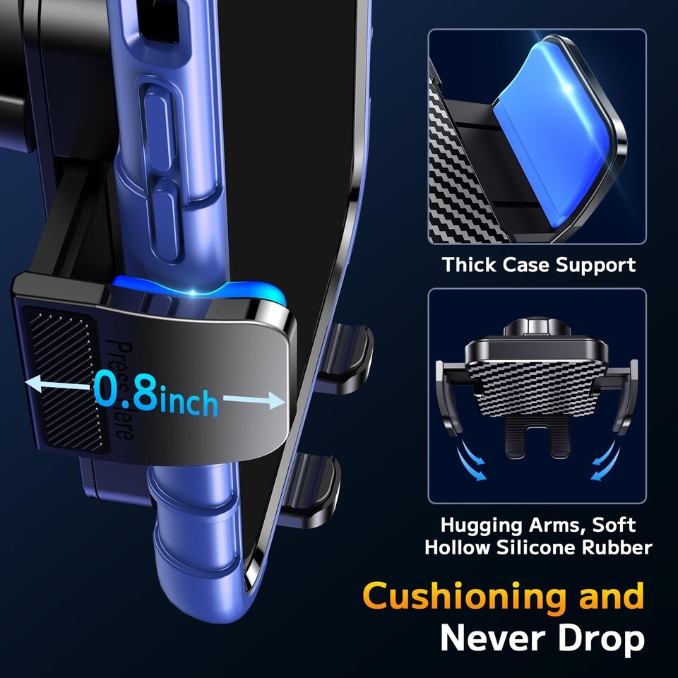 Cell phone protector while driving: iPhone car mount can be fit with in terms of thickness, most cell phones (4-7"in) and even those equipped with big phone cases. Car phone holder mount padded with multiple soft silicone pads to avoid scratching your smartphone or other devices. Lower socket for charger and provides a good grip anti-slip. No need to worry about falling your phone even when driving fast over bumpy road.
